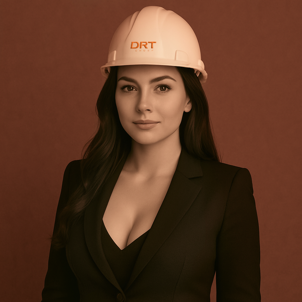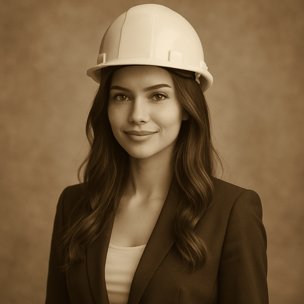 — Уверенная сексапильная девушка в пиджаке и каске — стильная, притягательная, с огоньком.